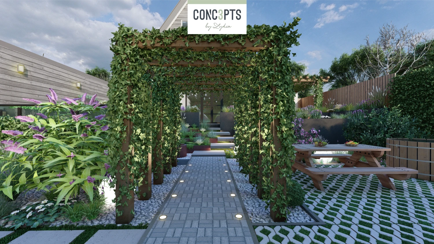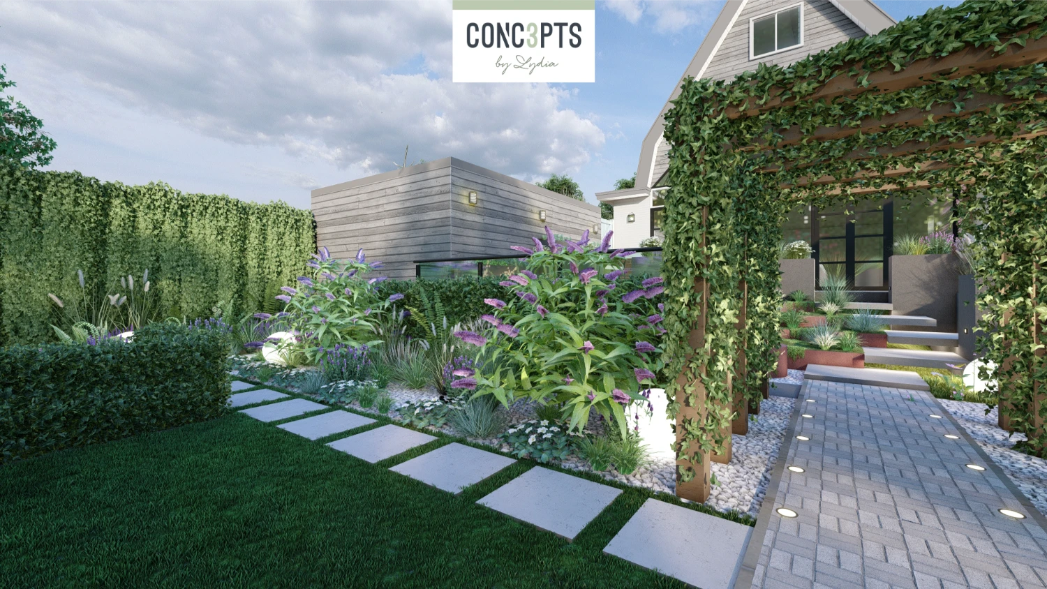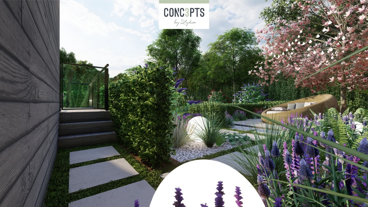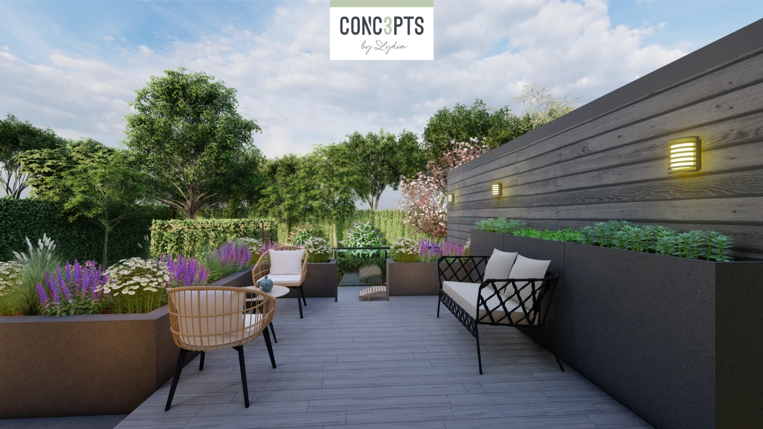 Met overvloedige zitgelegenheden en speelse hoogteverschillen is de tuin een perfecte plek voor ontspanning. Verhoogde heggen wekken nieuwsgierigheid en elk hoekje nodigt uit tot ontdekking, terwijl serene rustplekjes schaduw en beschutting bieden voor volledige ontspanning.